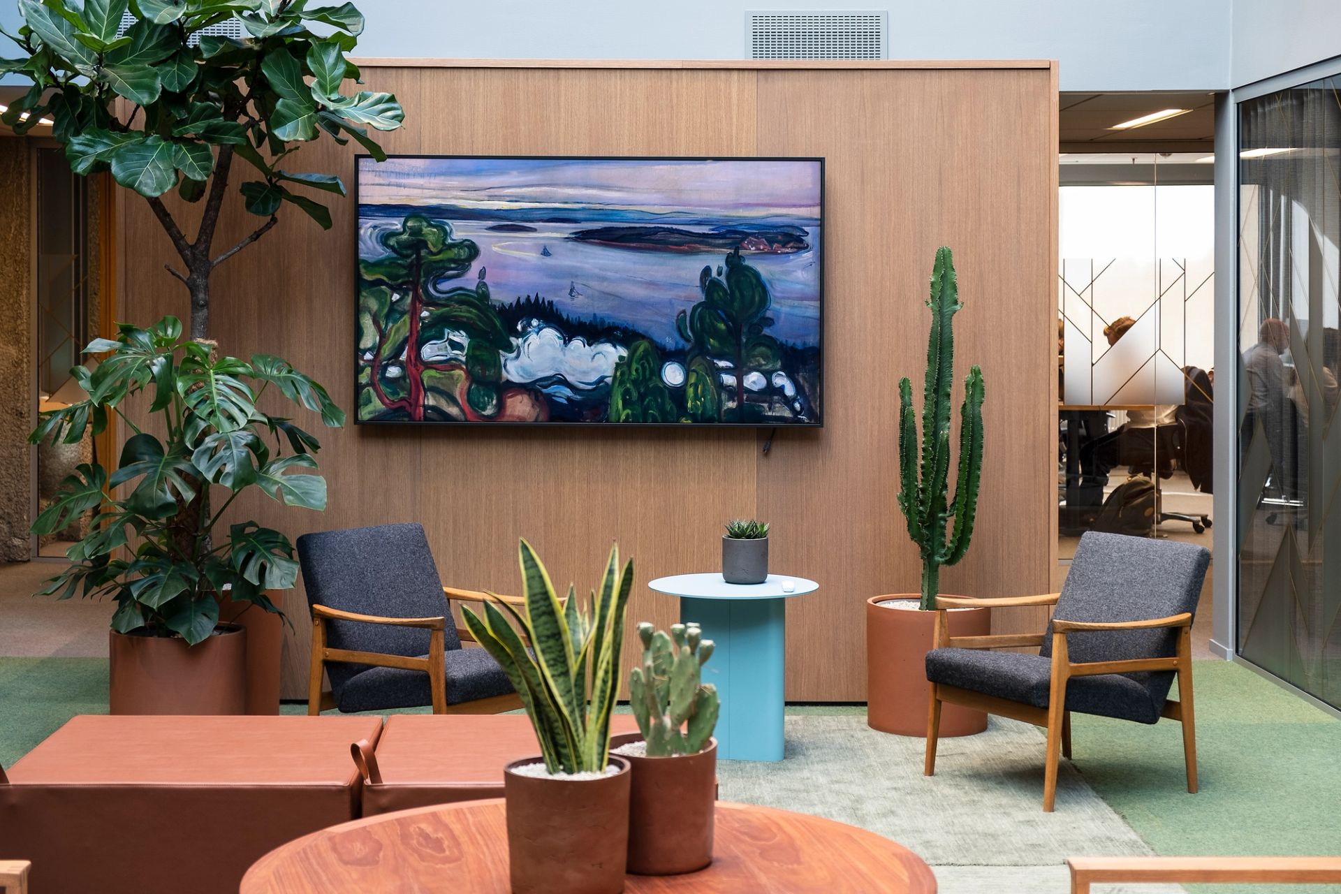 Vi er imponert over jobben interiørarkitekt Jennifer Valone og produktdesigner Halvor Thorsen i Ace Creative har gjort – både når det gjelder selve kontorfelleskapet, men også Indekshusets fellesareal.