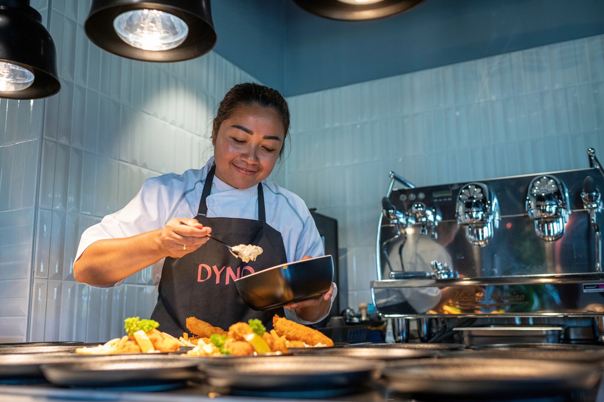 Kaféen Dyno byr på digg lunsj mandag-fredag, samt et utvalg av snacks, kaffe og kald drikke. Vi har en egen husvert på lokasjonen som bistår med praktiske gjøremål og som sørger for at våre servicetilbud alltid blir ivaretatt. Alle våre lokasjoner tilbyr fri print, kaffe og lynrask Internett. Vi sørger for at det alltid er blekk og papir i printeren!